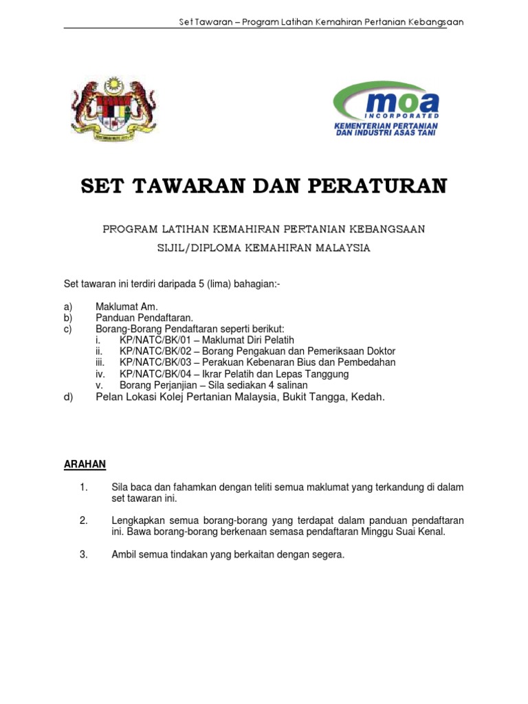 Lampiran 1 Set Tawaran Program Kemahiran Malaysia